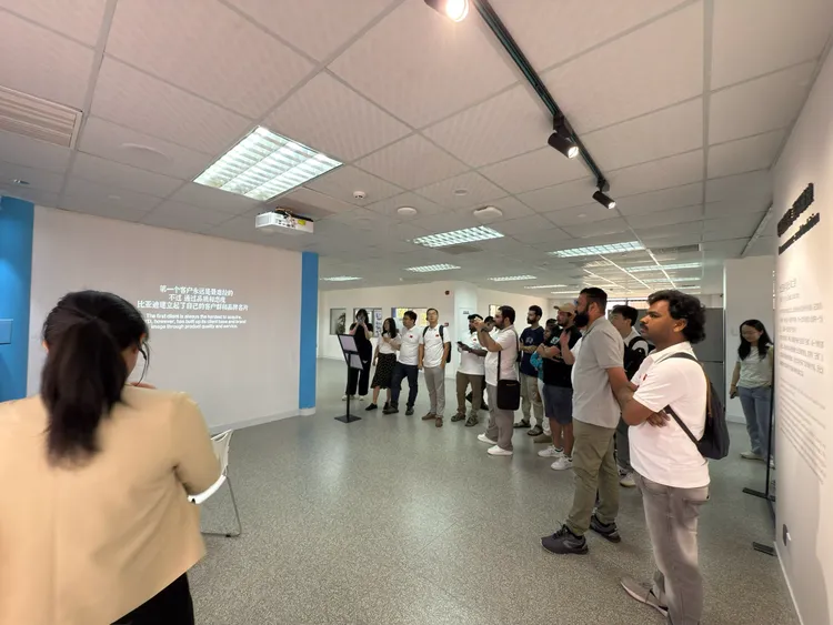 比亚迪提供了专业的全英文讲解,在比亚迪相关负责人的陪同下,博士后团队首先参观了比亚迪历史博物馆,深入了解了比亚迪从电池业务起步,逐步拓展到电动汽车、轨道交通、新能源整体解决方案的跨越式发展历程。博士后们对比亚迪坚持技术自主研发、不断突破行业边界的创新实践表现出浓厚兴趣。